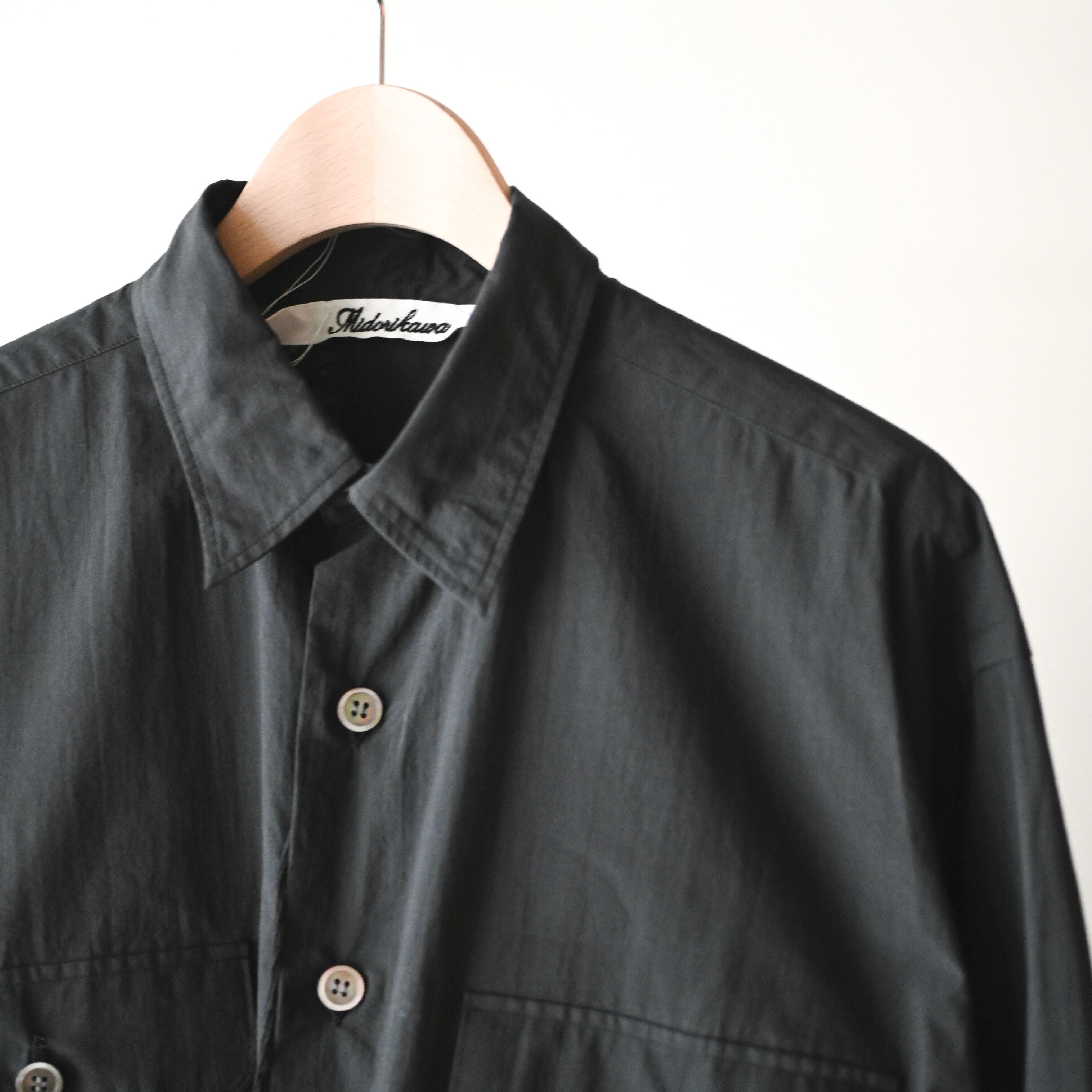 オリジナルのシーツクロスをブラックに染め上げた、ミドリカワのシャツ生地といえばな素材でシンプルなベーシックシルエットで登場。