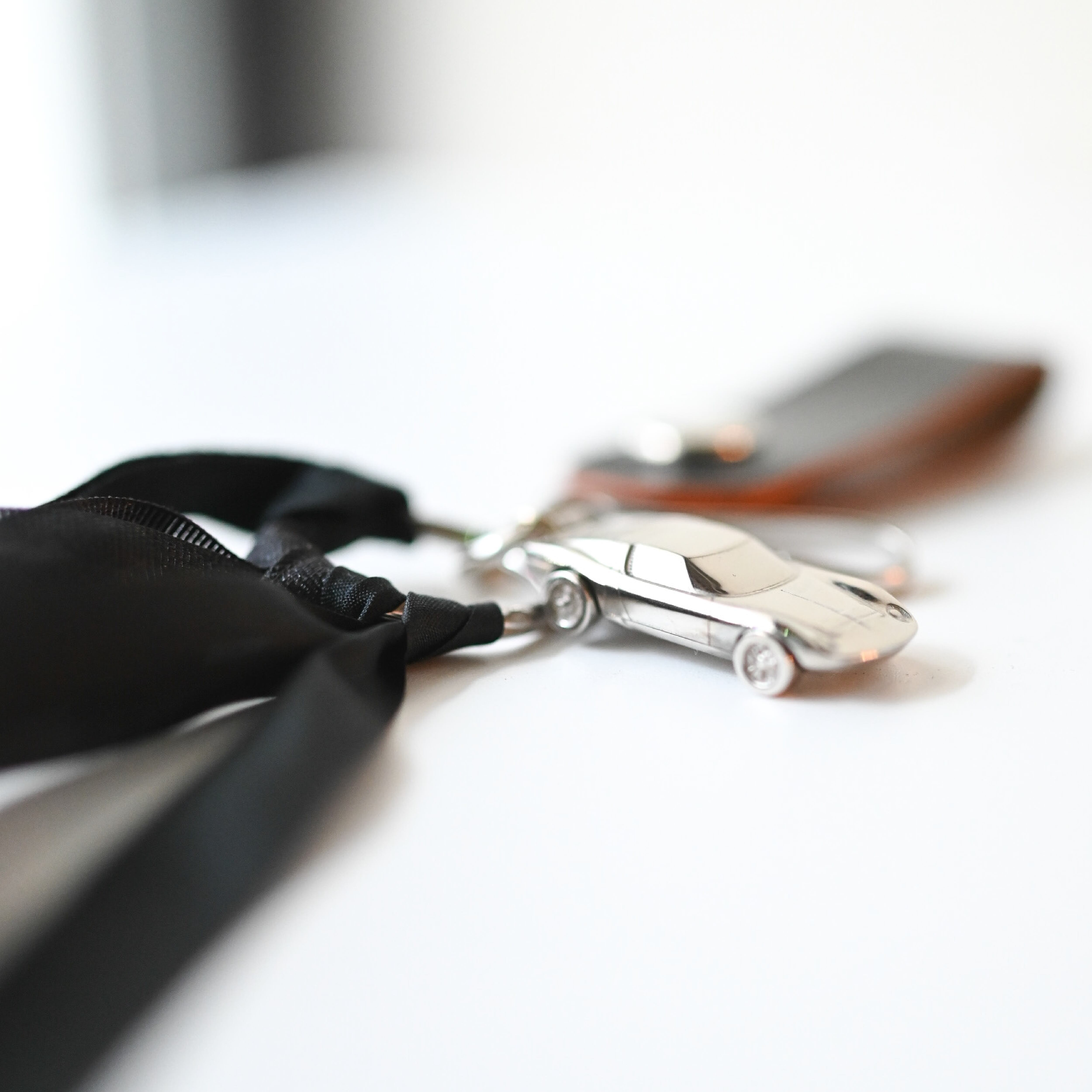 END CUSTOM JEWELLERS製のオリジナルミニカーチャームが付属した、ミドリカワのキーリング。