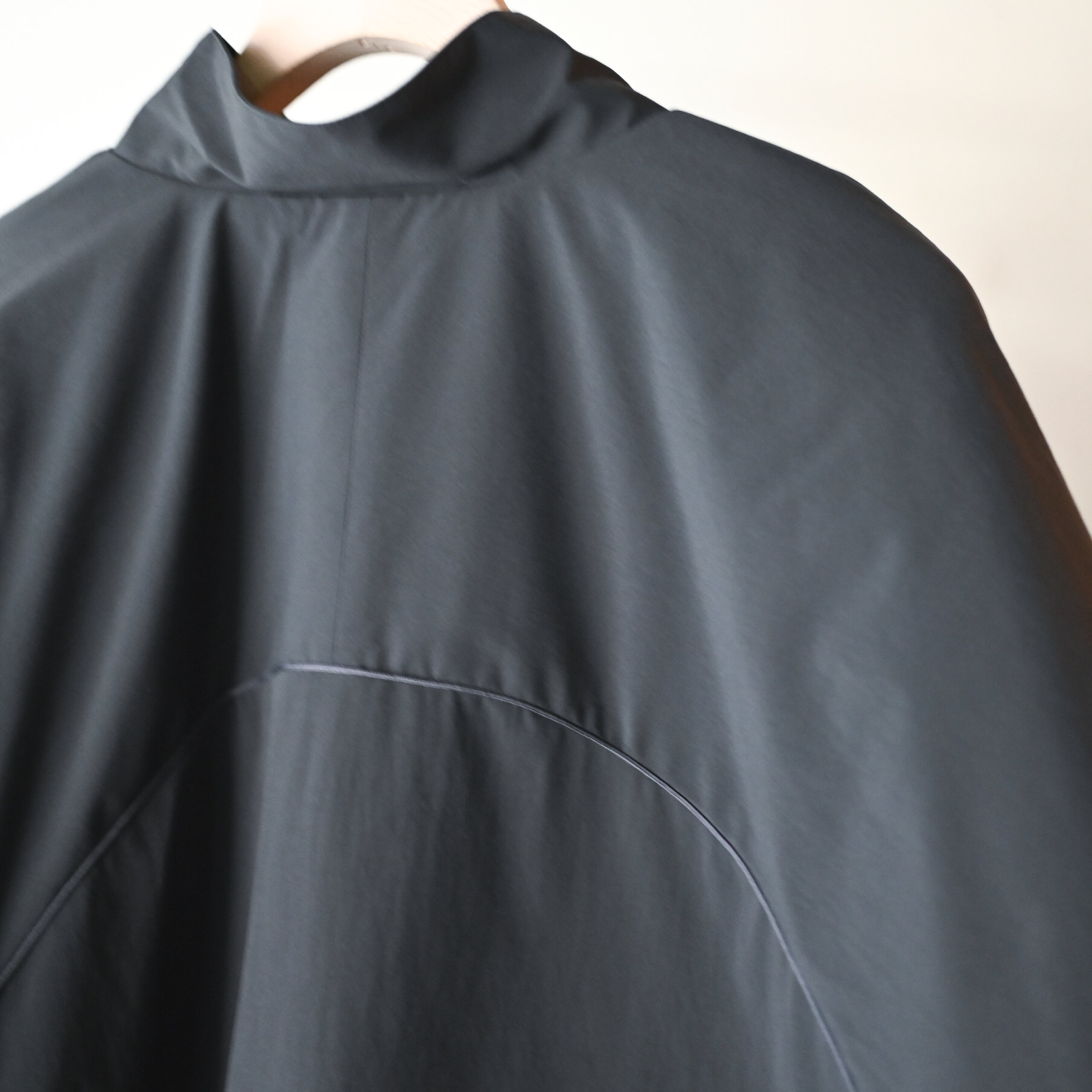 ラグランスリーブで肩まわりのストレスも軽減され、腕周りのジッパーや胸下から大きく取られたポケットは大容量で機能的かつ、デザインとしても目を惹くファッション性も両立した1着です。