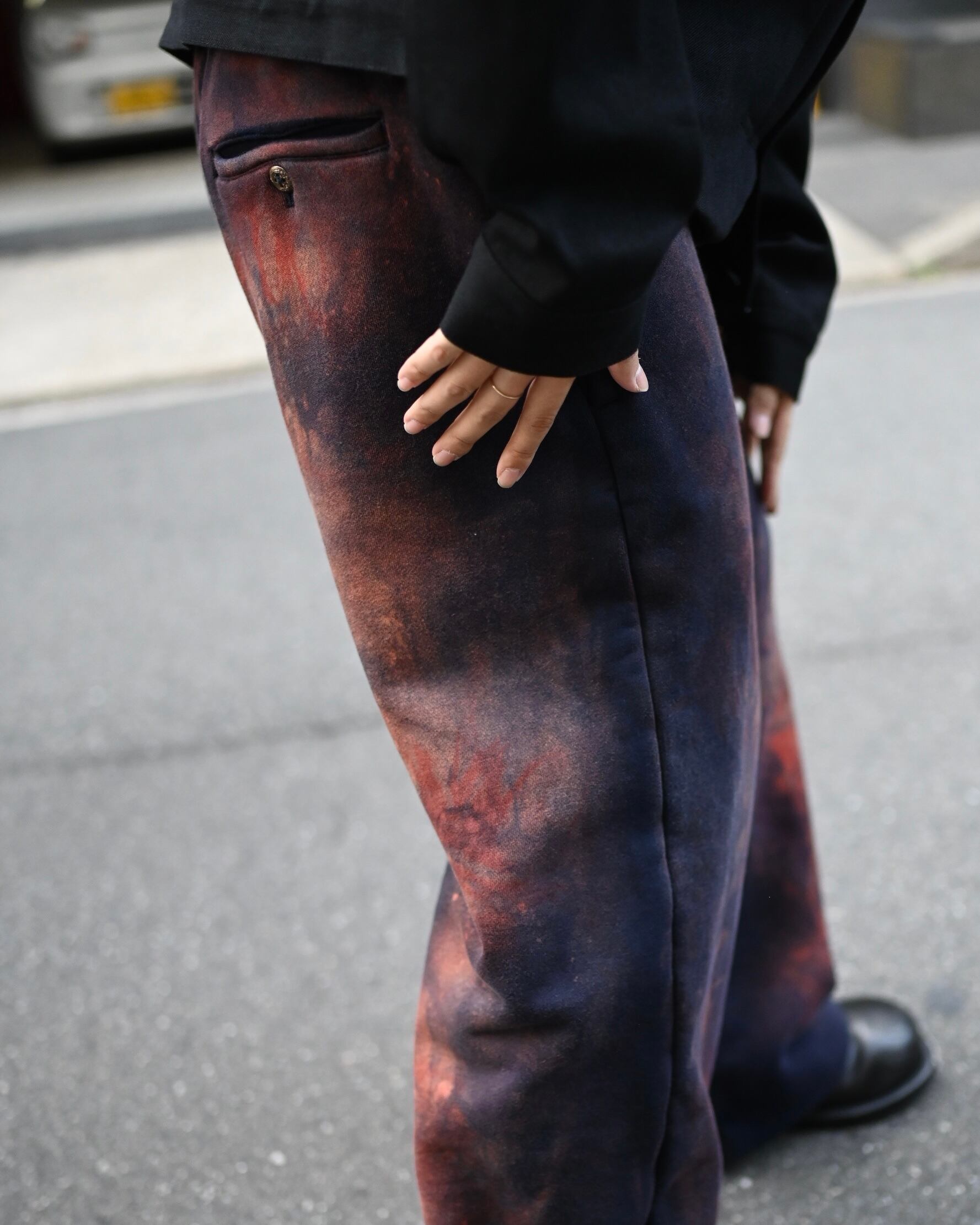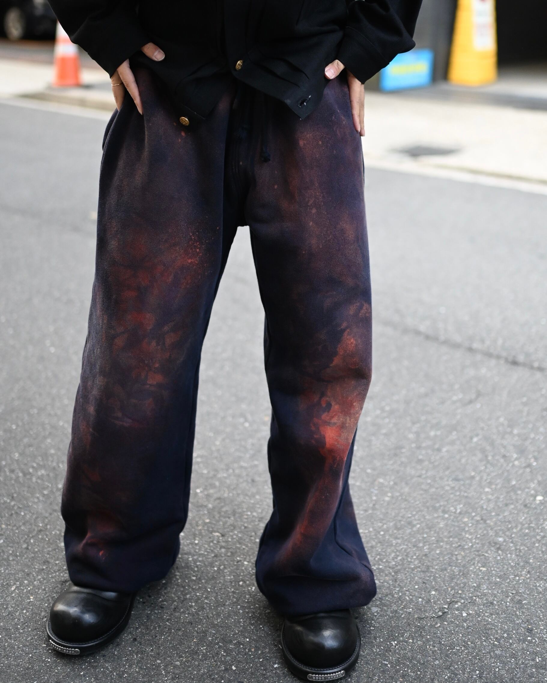 ここまでかというほどの加工が施された生地感のスウェットパンツ。