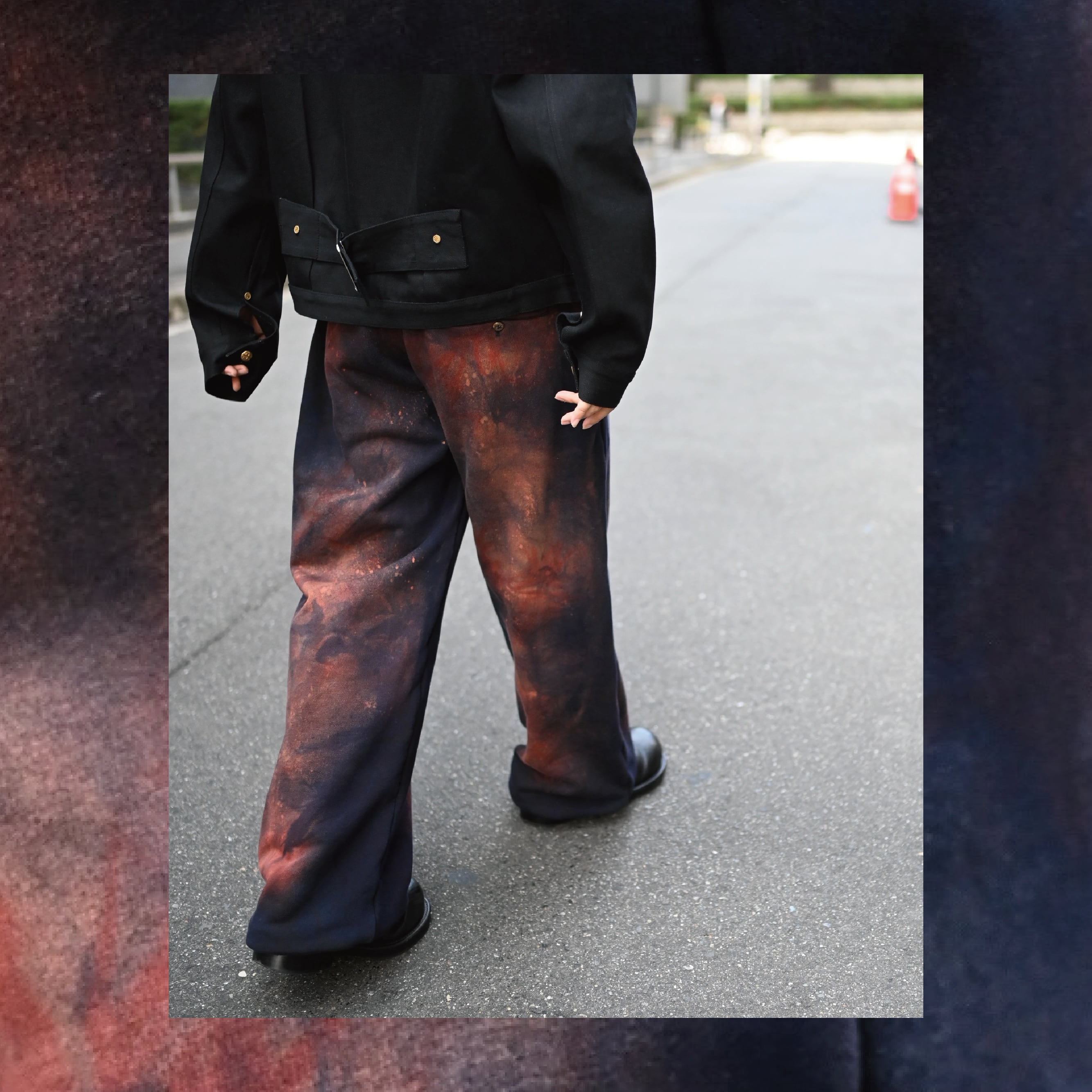 こちらはフルレングスで裾の絞りが効くので、フリーサイズですが足元にしっかりとボリュームを出して、スニーカーから革靴まで幅広いシューズで様々なバランスを楽しんで頂きたい。