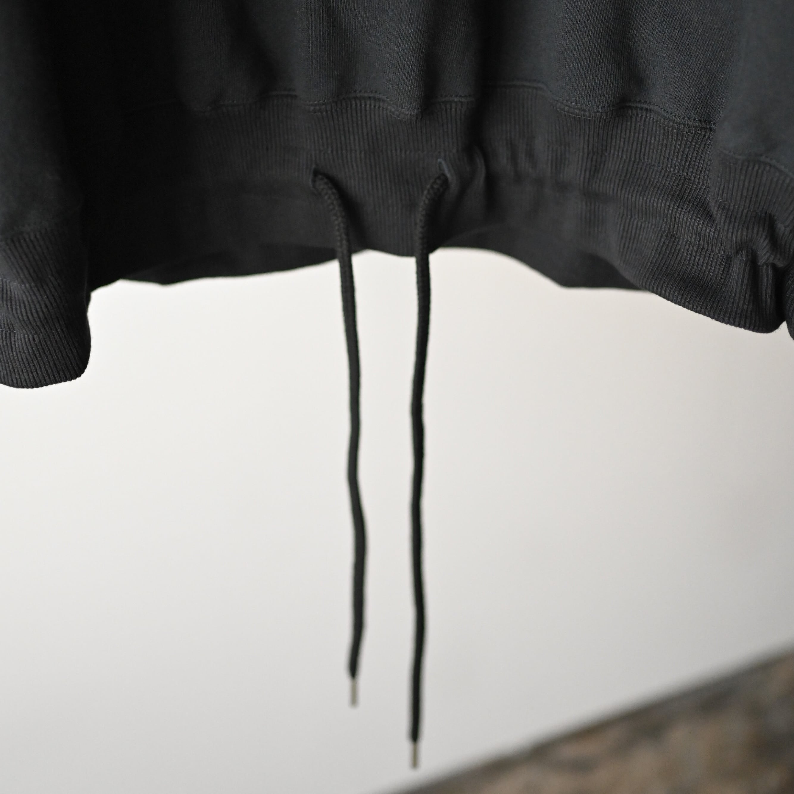 00年のASローマのゲームシャツを思わせるタイトなモックネックは採用しつつも、先ほどのややタイト目サイズのSに加え、こちらのカラーはあえてLサイズでネック以外がオーバーサイズになった現代的なシルエットもオーダー。オーバーサイズ時は裾のコードで着丈を調節できるのであえてLサイズで着るのも面白いアイテム。