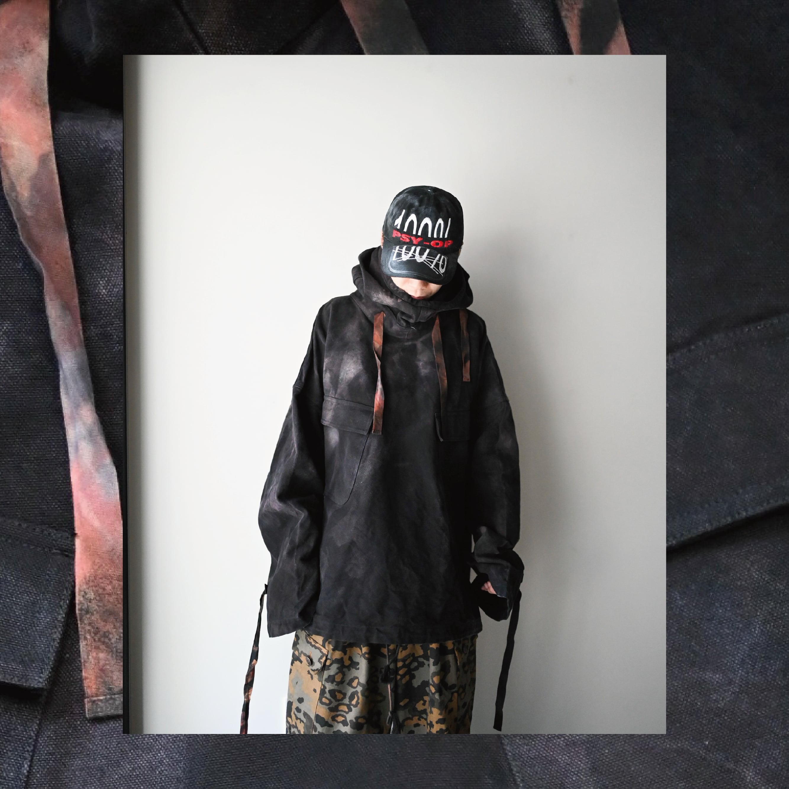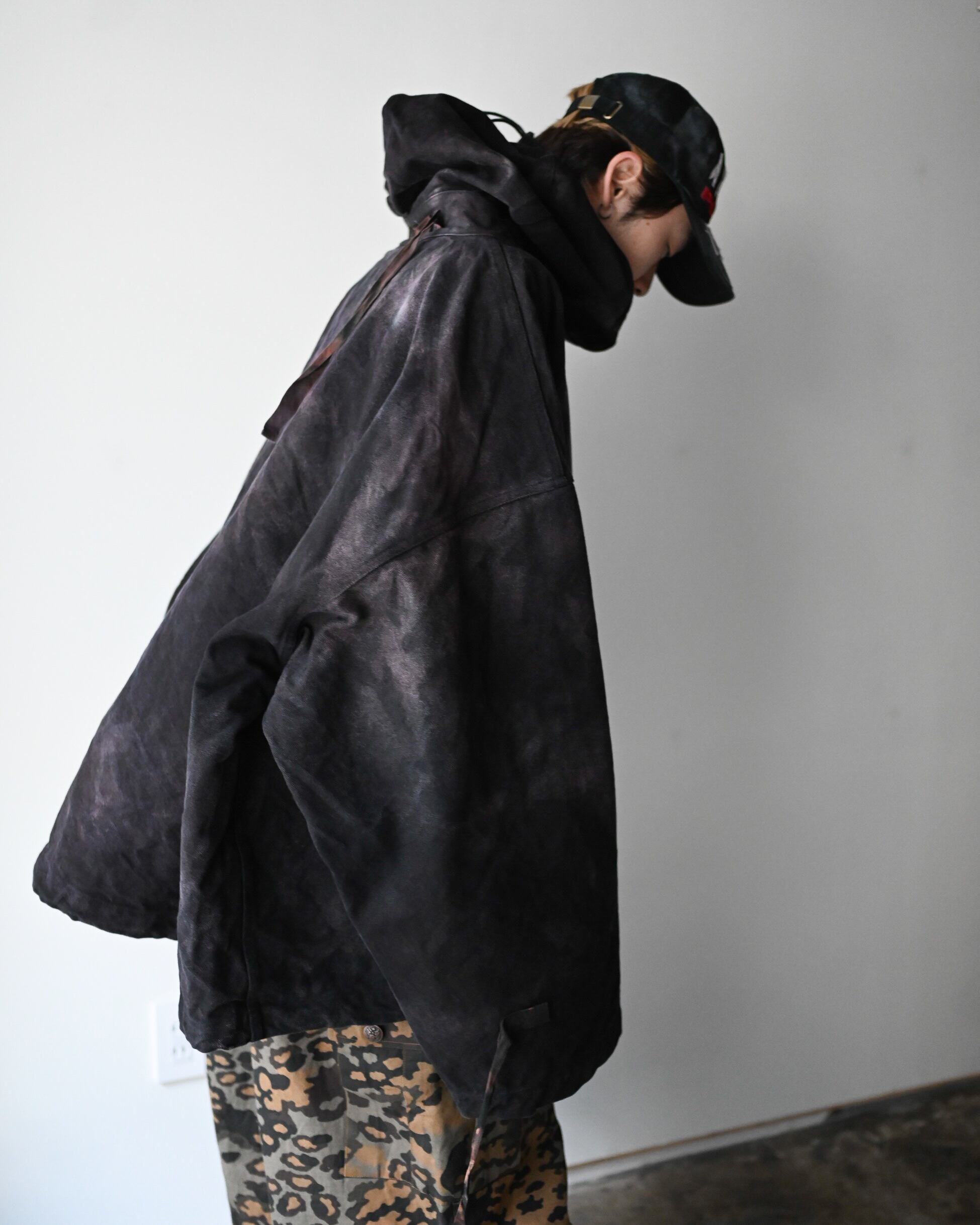 スーパービッグシルエットのアノラックパーカー。全面にテクニカルな染めが施され、規格外の大きさで非常にファッショナブルな1着。