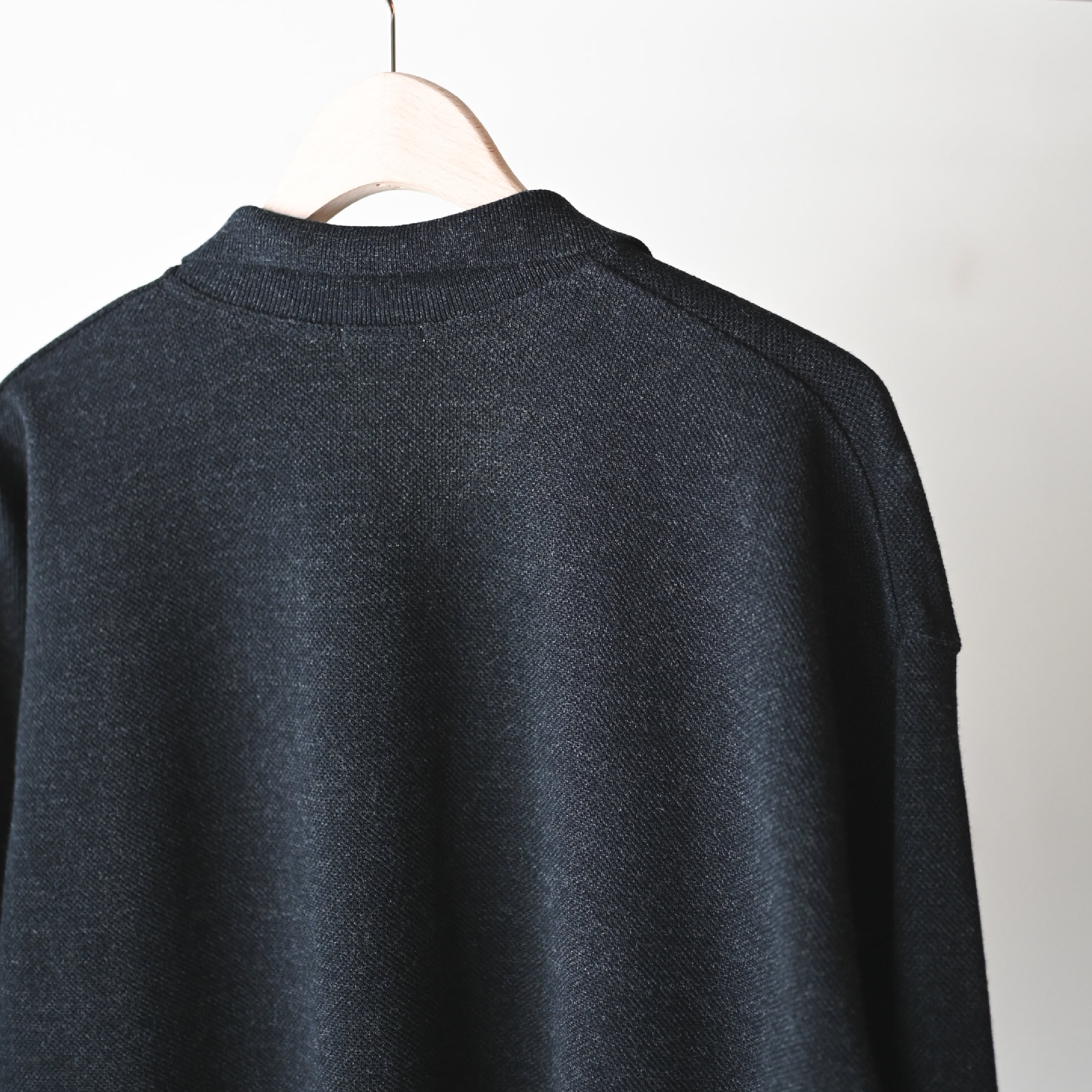 鹿の子編みの暖かみのある生地の表情と快適な着心地に加えて、ウールの毛足が秋冬に必要な重みと品を添えてくれています。