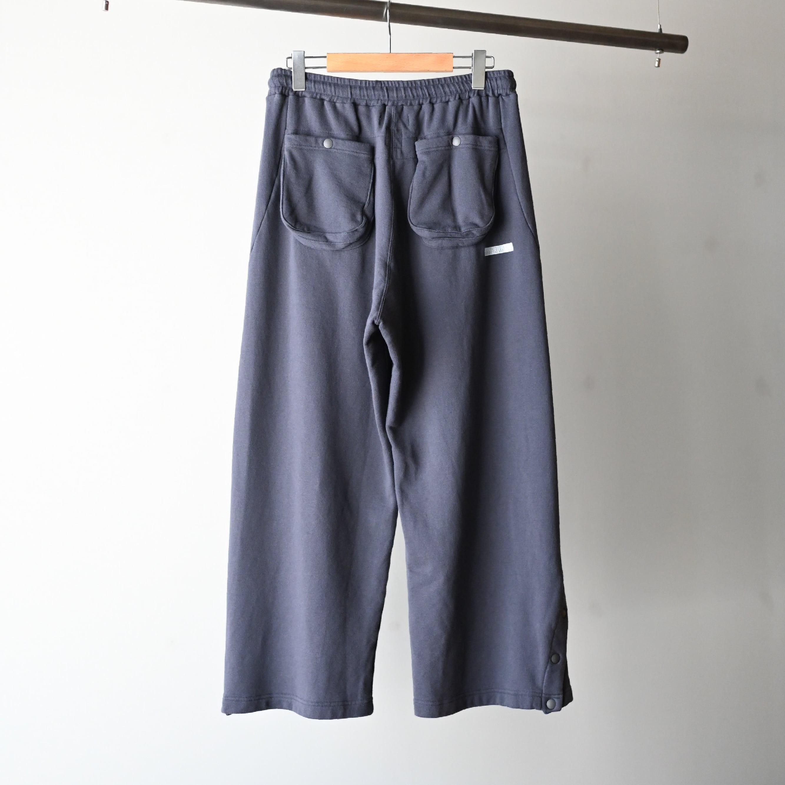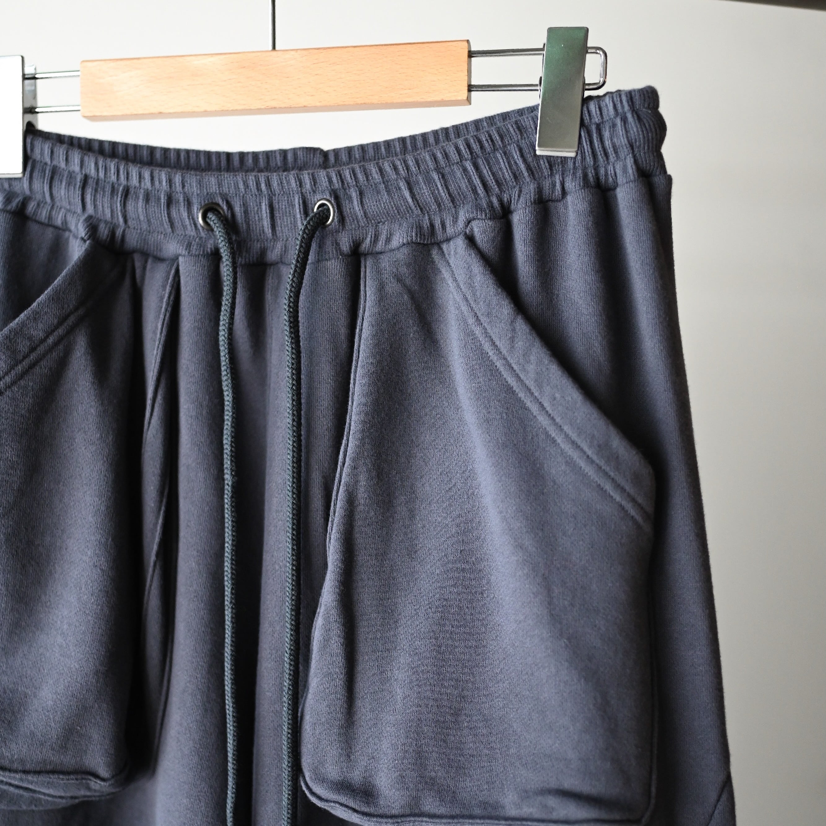 サイドのカーブ切り替えがポイントのスウェットパンツ。ポケットにマチを付け、立体感のあるデザインにしています。