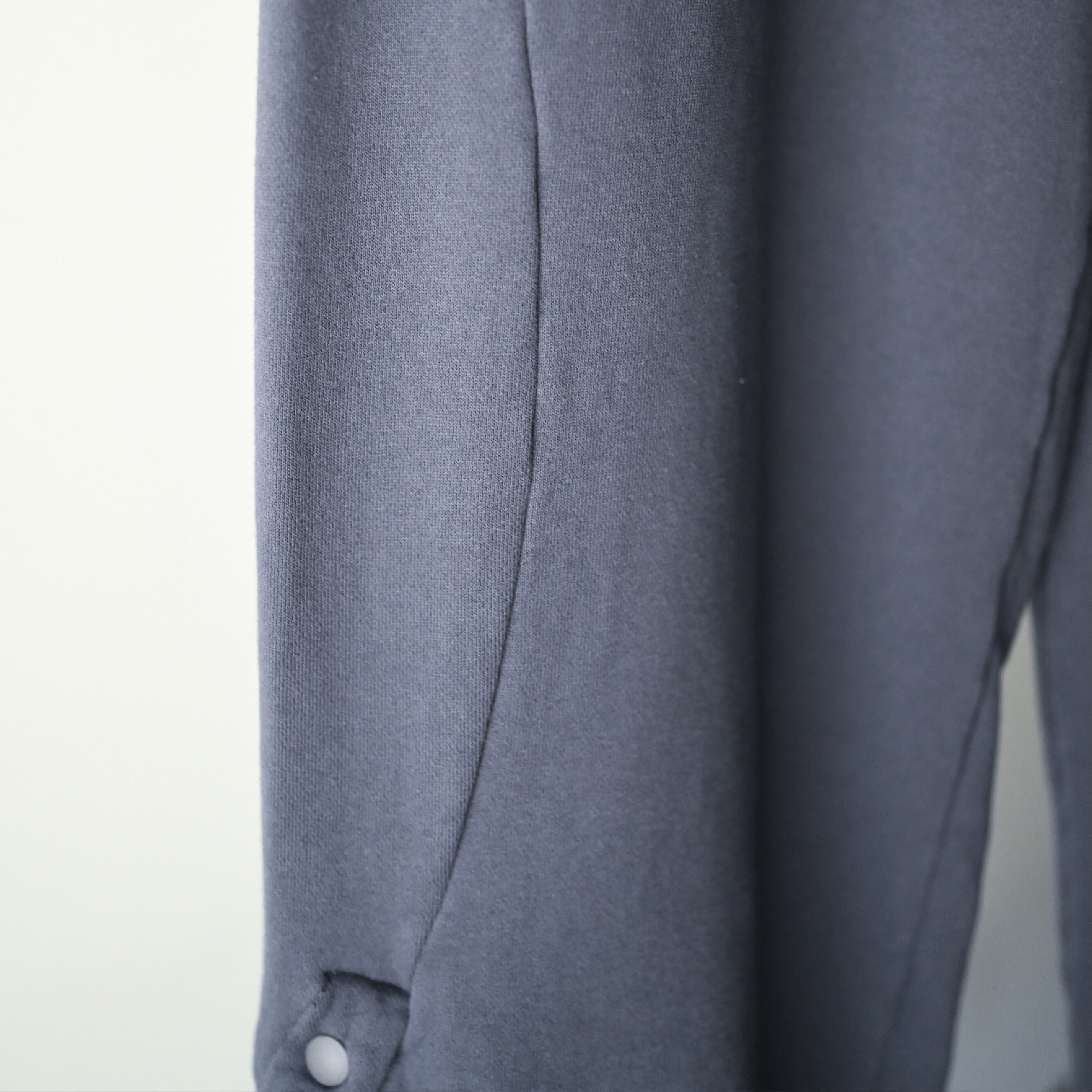 こちらも先ほどのフーディと同生地の凸凹感のあるスラブ感のある裏毛を使用しており、セットアップでも着ていただけます。