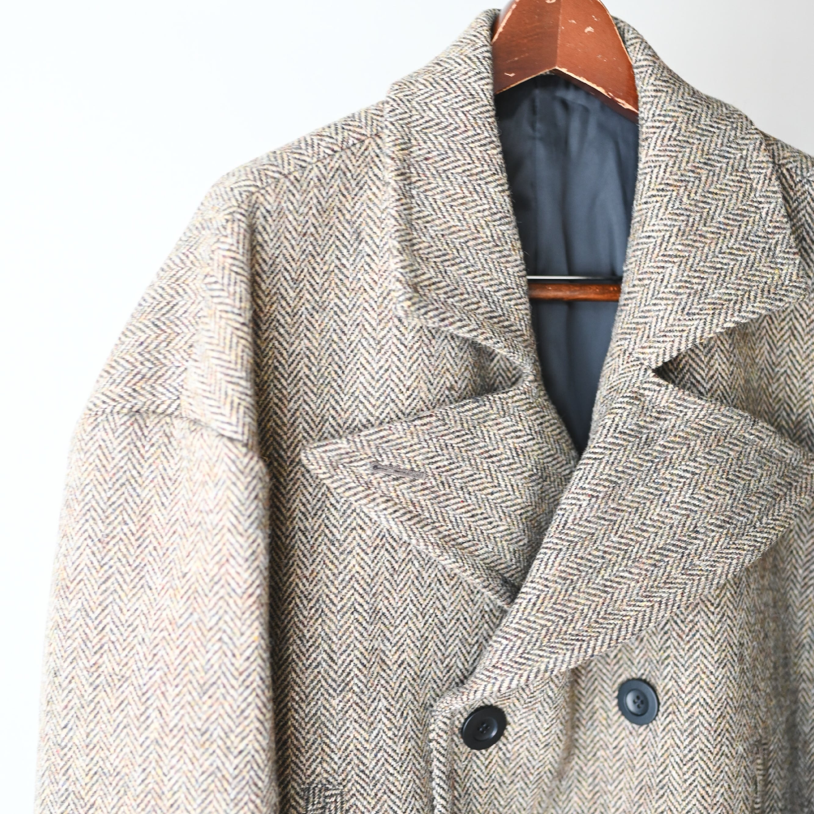ハリスツイードを贅沢に使用したオーバーサイズのピーコート。