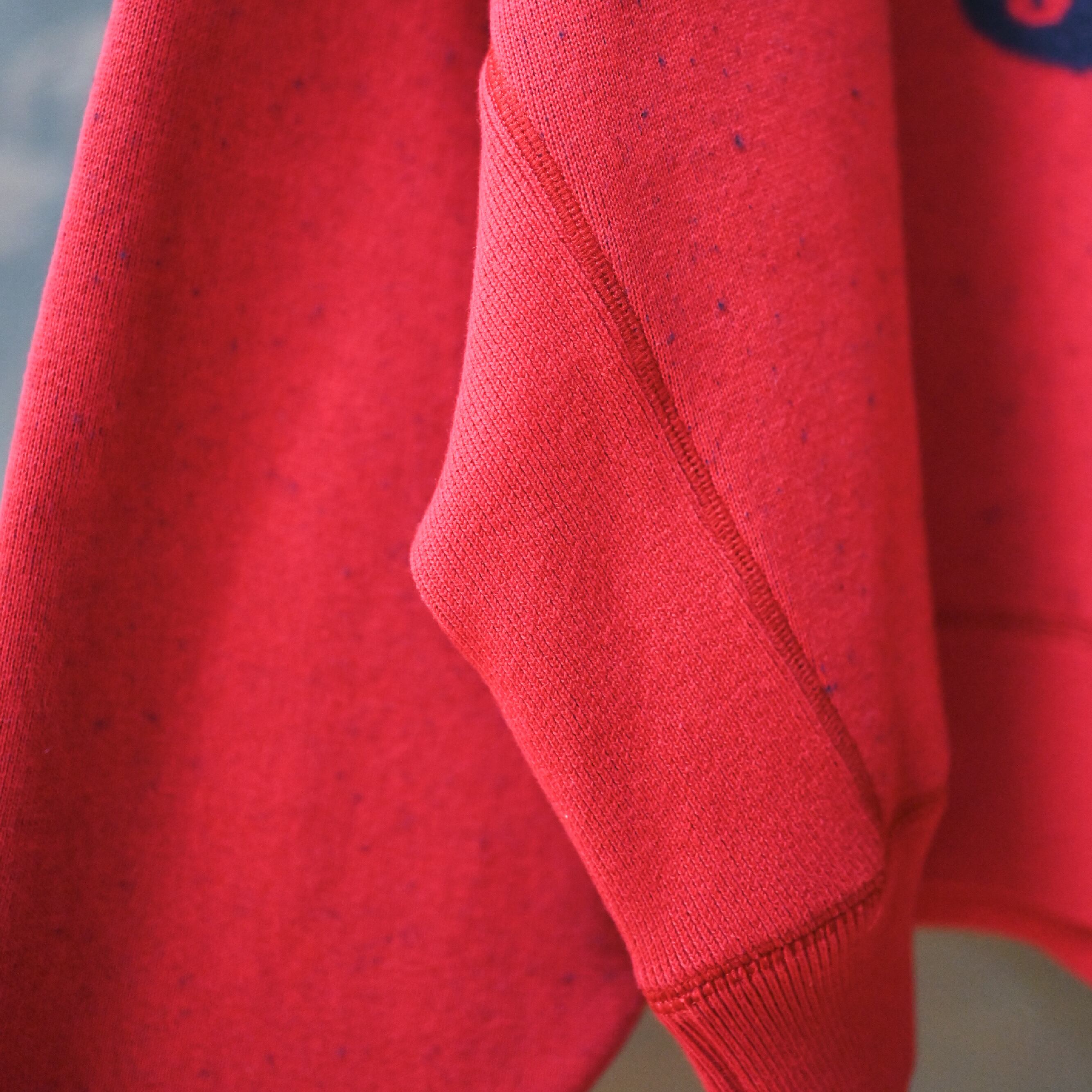 裏側にはふんわりとした柔らかなリング状の糸を配置し、肌に触れる部分は快適な肌触りを実現。さらに、この特殊な構造によって表側の編み地には独特なポコポコとした糸の質感が現れ、ヴィンテージ感あふれる仕上がりに。