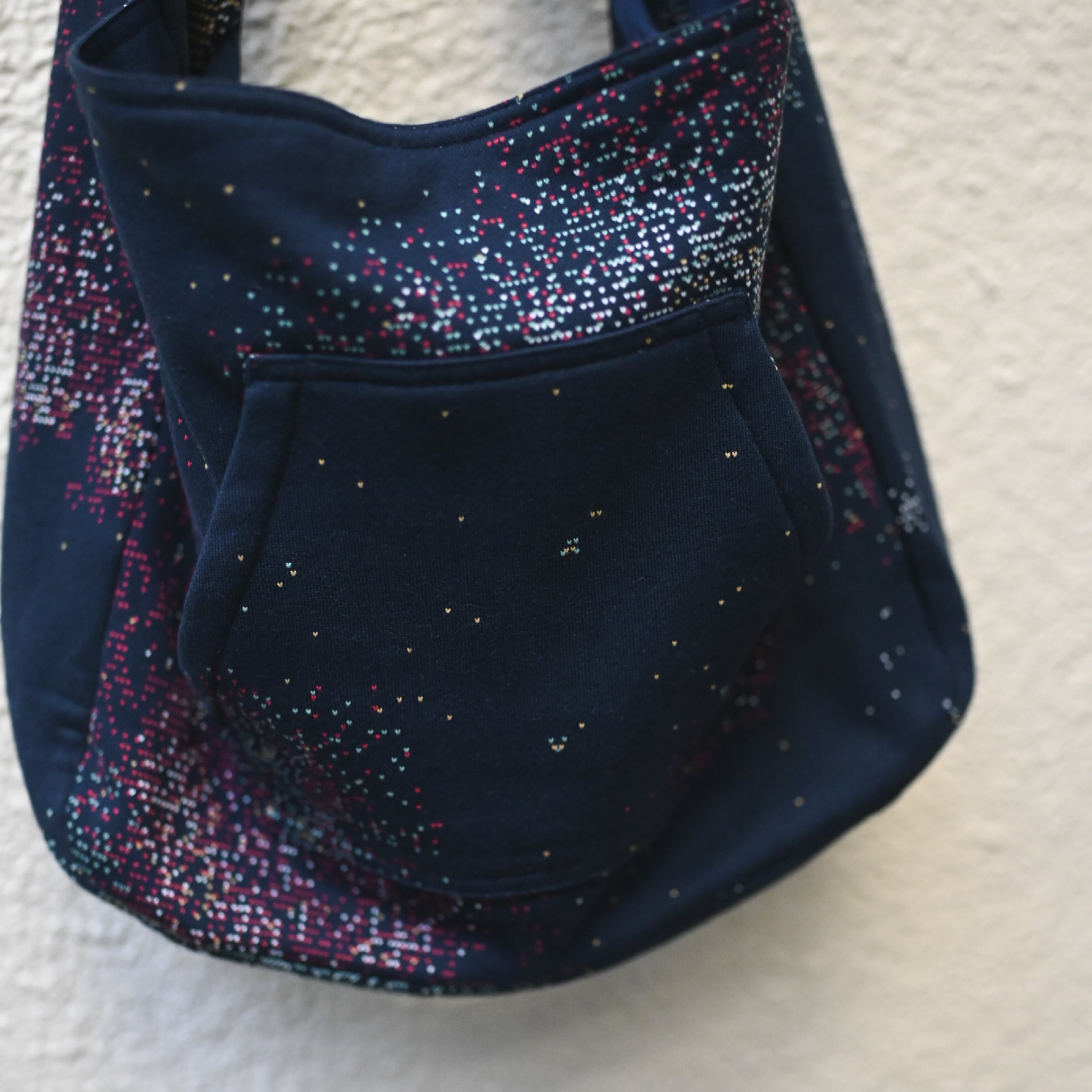 ショルダー部分は手を繋いだようなディテール、フラップ部分を開くと内側にジップが取り付けられたフード型の大きなポケットとフラップを上げた面には、パーカーらしいカンガルーポケットまで取り付けられたユニークなデザイン。