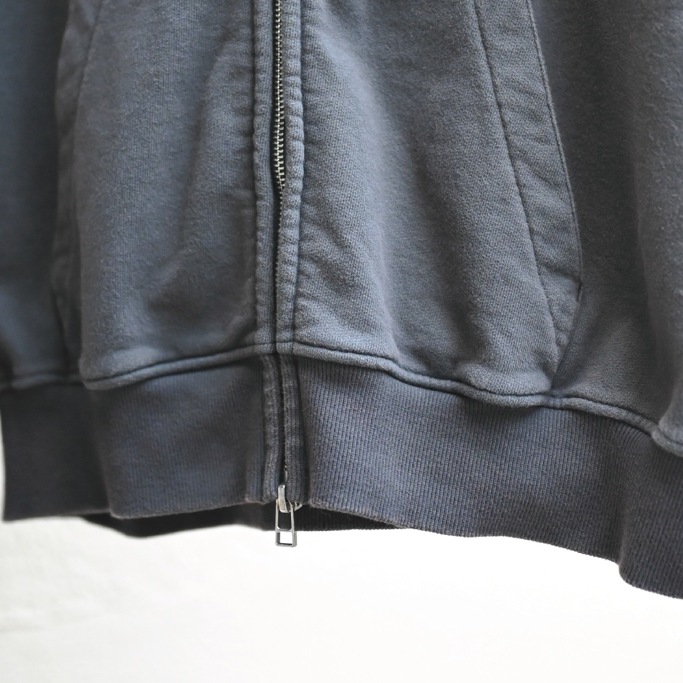 製品染め・バイオ加工が施されたヴィンテージのような色味と風合いが特徴的なショート丈のスウェットフーディー。