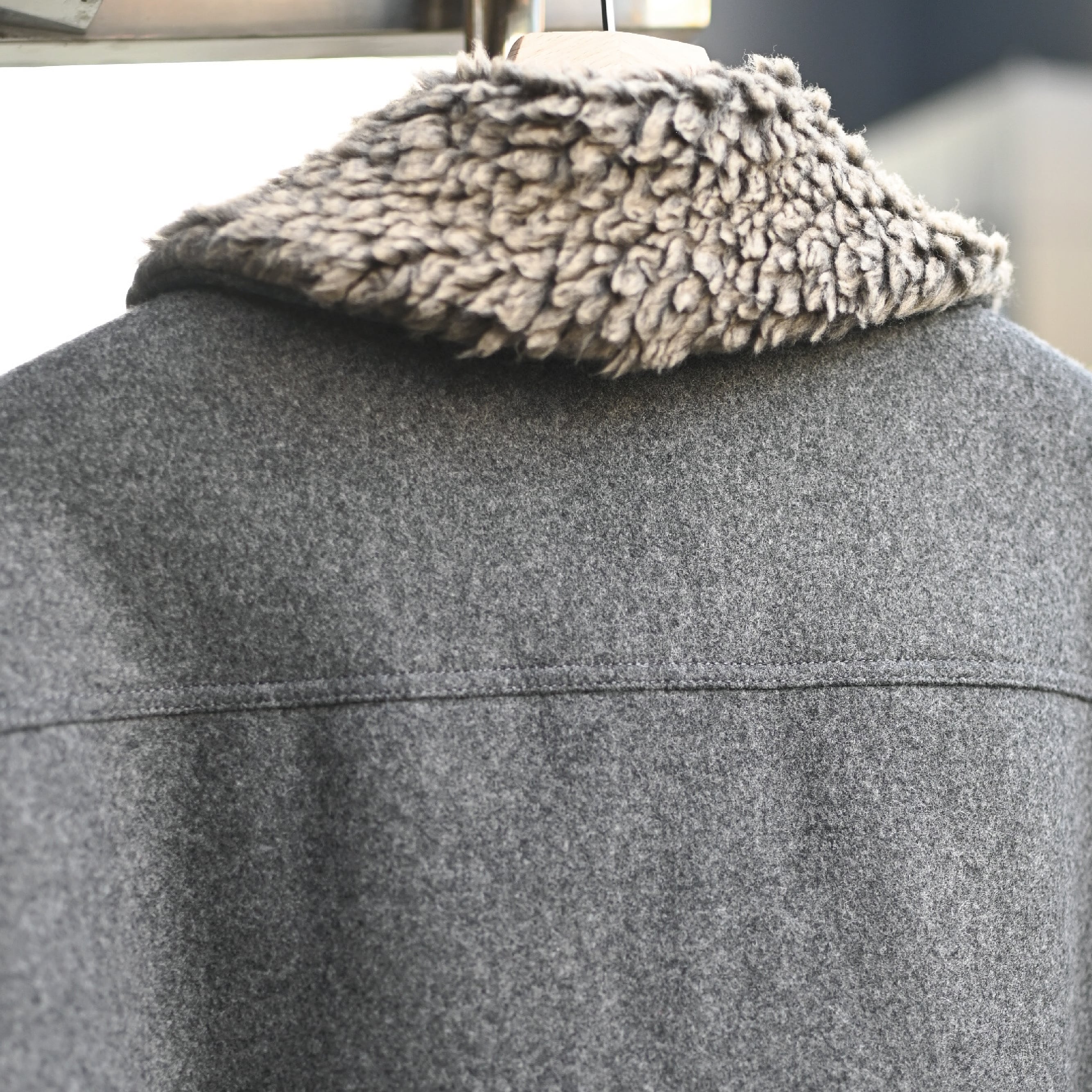 アクリル・ポリエステルのボア襟もしっかり冬仕様。広く取られた身幅と立体的なアームからなる自然な溜まり具合、キュプラの総裏地付きで袖通しも良く、軽くて着心地の良い理想的なアウターに仕上がっております。