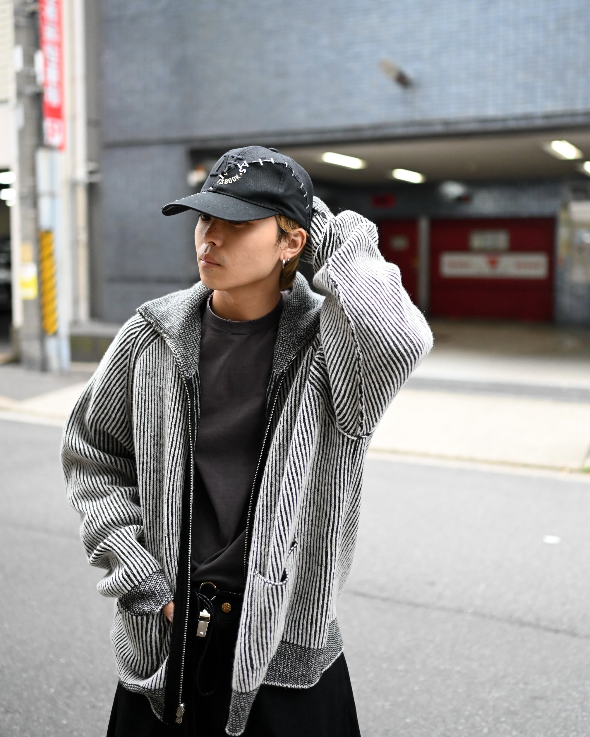リバーシブル仕様のフルジップドライバーズニットジャケット。