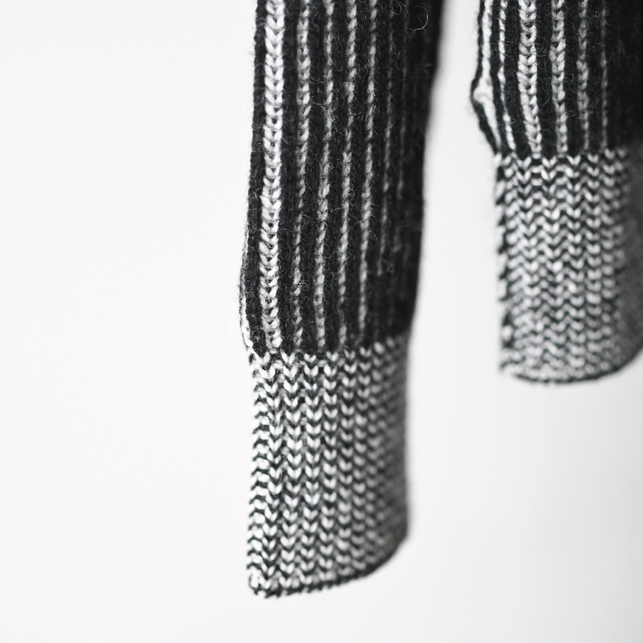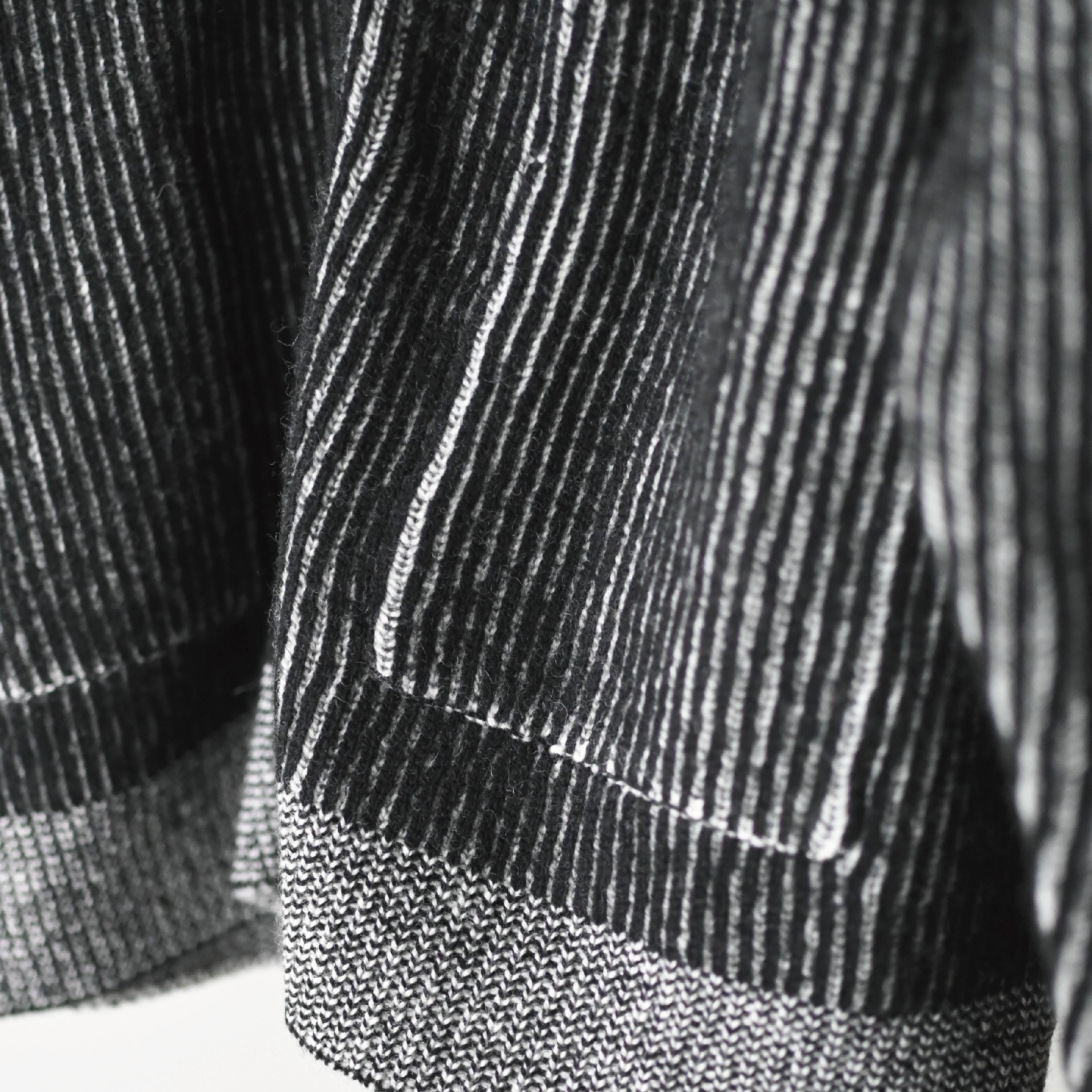 ダブルフェイスの程よい肉厚感とたっぷり取られた身幅に対してスッキリとした着丈のバランスがドライバーズニット特有の緊張感を緩和し気張らずに着用できる1着。